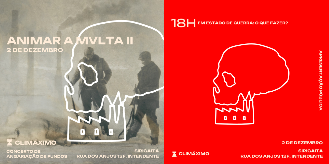 - e sábado a partir das 18h há festa benefit Climáximo, para ajudar a pagar aquelas multas famosas. Chama-se ANIMAR A MVLTA II e será uma noite toda ela especial, com jantar, momentos de reflexão e um concerto de Bern Hard, portanto uma coisa para cada gosto.