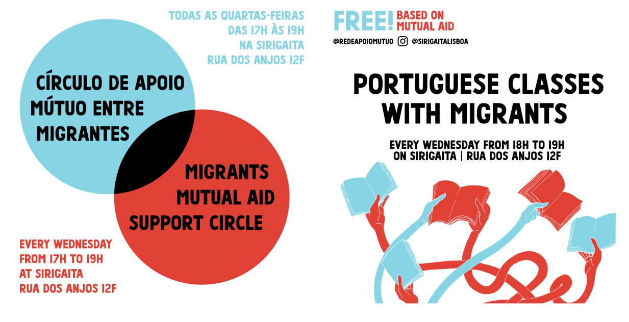 A grande novidade nas “outras portas abertas” da Sirigaita (que são quase todos os dias!) é que o Círculo de Apoio Mútuo Entre Migrantes, que acontece todas as quartas-feiras das 17h às 19h, passa de ora em diante a incluir uma hora de aulas de português para migrantes.