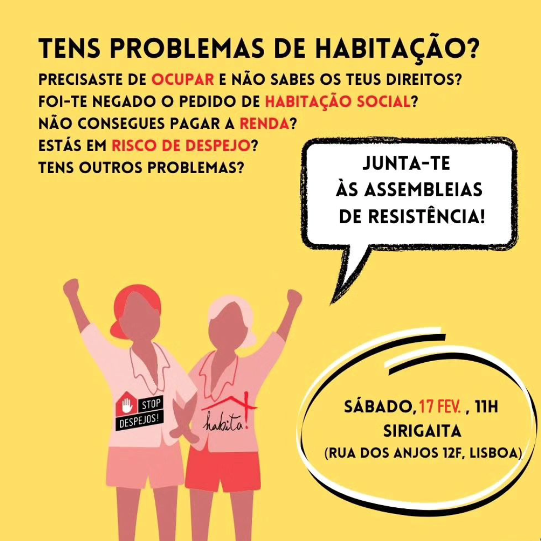 Se estás com problemas de habitação ou queres apoiar a nossa luta junta-te às assembleias de resistência!